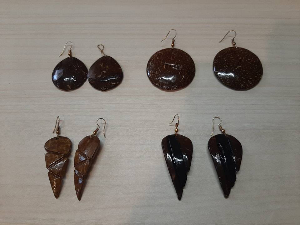 The hardworking hands of women and girls from the Women's Club we founded a few years ago continue to make new handicrafts. These are beautiful handicrafts of candles hollowed out in the coconut bark, beautiful earrings made of coconut peel and cloth bags/ checkers.